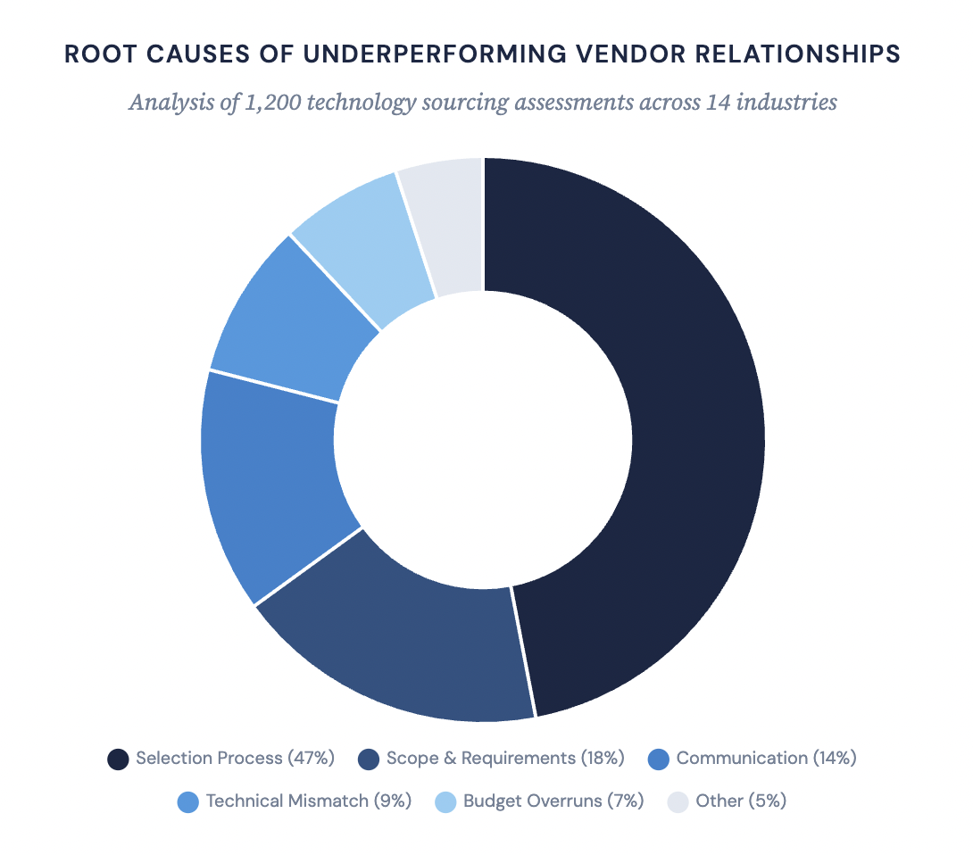 Root causes of underperforming vendor relationships based on 1,200 technology sourcing assessments across 14 industries